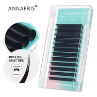 ANNAFRIS 3Dマットダブルチップミンク個別まつげエクステンション自然ソフトスプリットチップ楕円形フラットラッシュ偽まつ毛用品